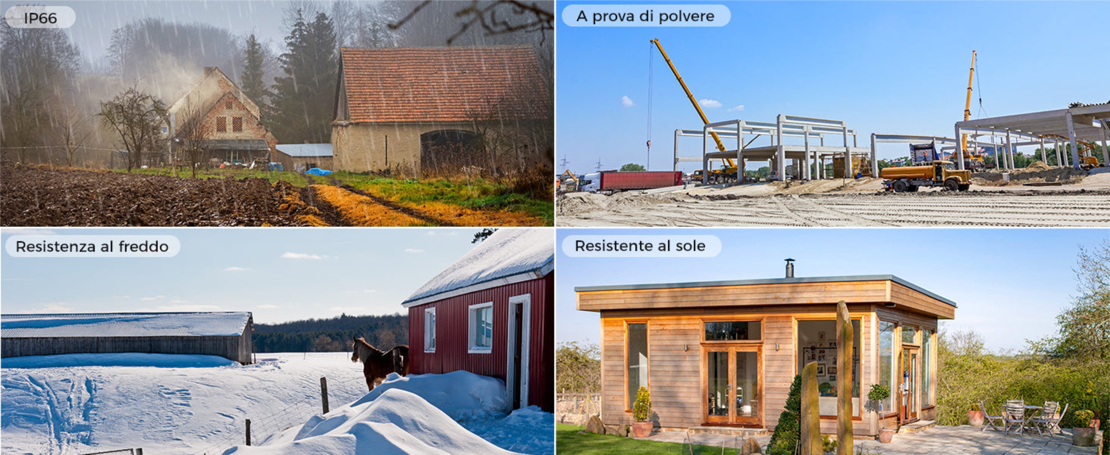 Questa telecamera IP esterno è compatibile con i sistemi IOS/Android (App: Ctronics Pro) e Windows/Mac (software: HiP2P). La telecamera con scheda sim è dotata di una custodia impermeabile IP66 che le consente di funzionare anche in condizioni atmosferiche estreme. Il suo design per il montaggio a parete e a soffitto la rende adatta ad aree esterne come porte d'ingresso, garage, vialetti, giardini, aree rurali e altro ancora.