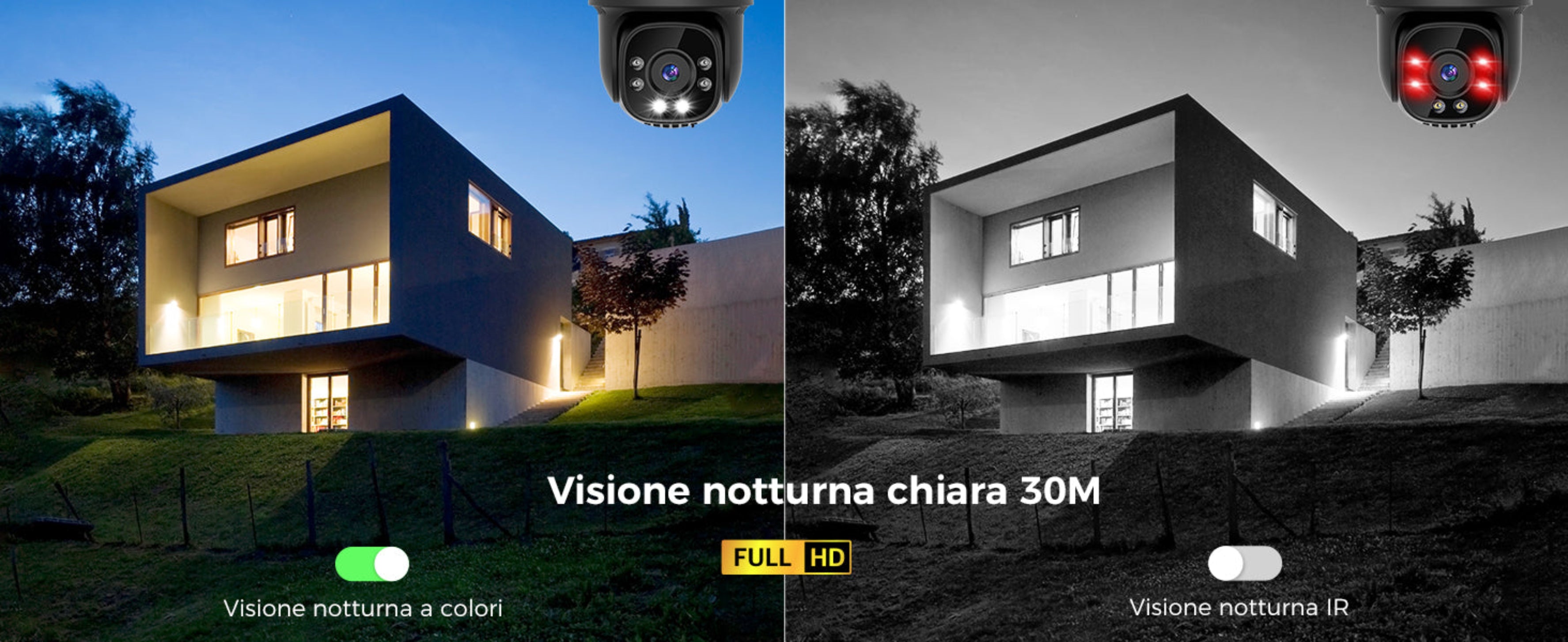 Questa telecamera da esterno offre una risoluzione di alta qualità di 2 Mp con zoom digitale 4X; la rotazione orizzontale di 355° e verticale di 90° offre un angolo di visione più ampio. La telecamera esterno con sim è dotata di 2 luci bianche, 4 luci a infrarossi e una visione notturna a colori fino a 30M, che rende ogni angolo chiaramente visibile di notte.