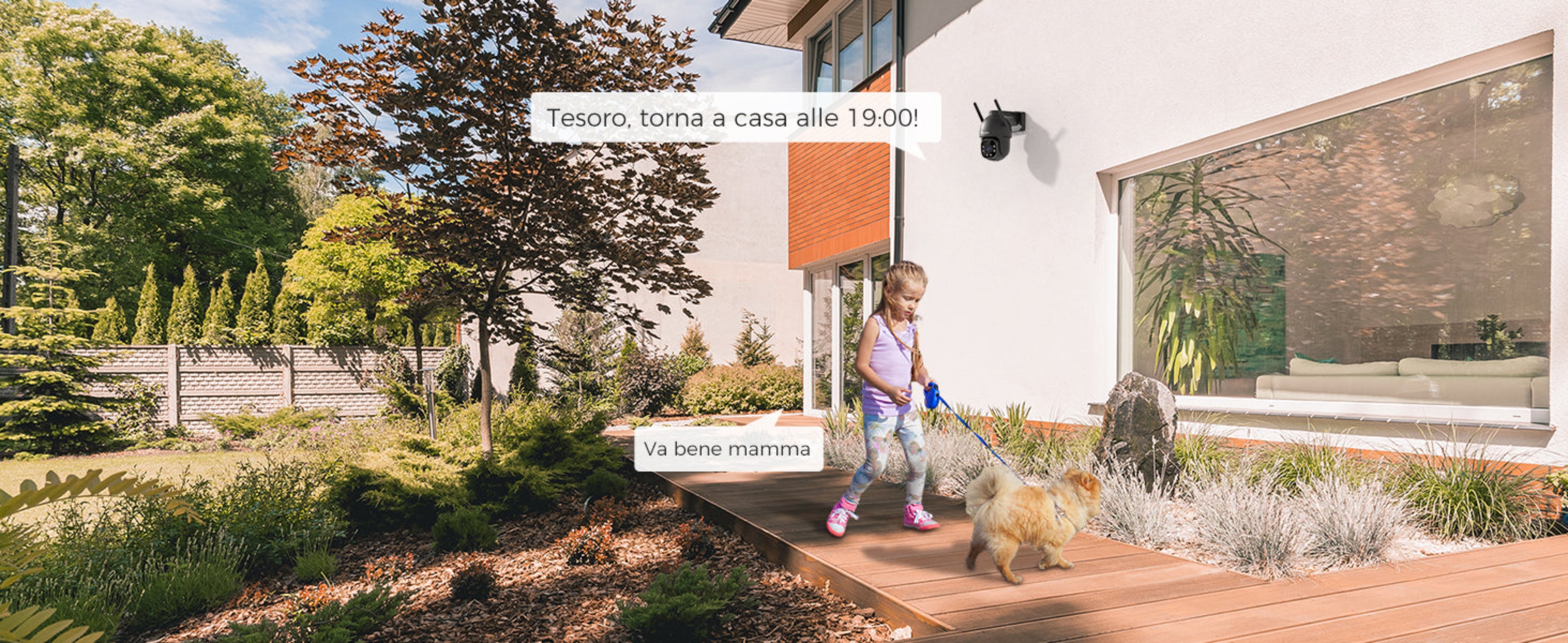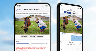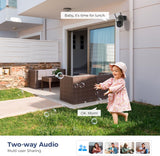 Accedete e controllate le telecamere da esterno da remoto utilizzando il vostro smartphone. Grazie al microfono e all'altoparlante integrati, è possibile conversare in tempo reale con familiari e visitatori. L'archiviazione locale supporta 24 ore su 24, 7 giorni su 7 di registrazione (fino a una scheda TF da 64 GB, non inclusa).