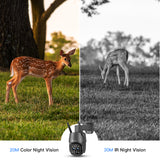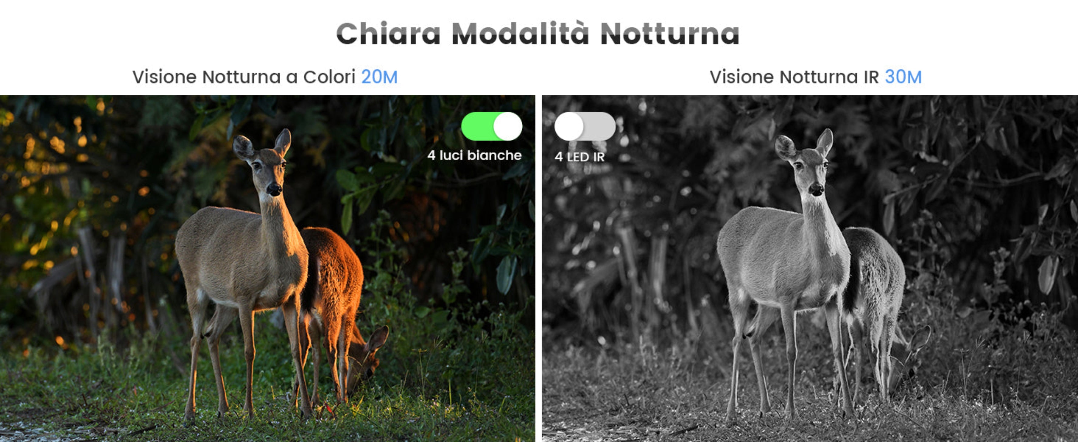 - 【Visione Notturna a Colori & Audio Bidirezionale】 Con 4 LED a infrarossi e 4 a luce bianca, questa telecamera con sim 4g da esterno è in grado di fornire una chiara visione notturna: a colori fino a 20M, IR 30M. È possibile scegliere tra tre modalità di visione notturna e impostare suoni di allarme personalizzati. Questa telecamera da esterno con sim è dotata di un altoparlante e di un microfono integrati, che consentono di conversare in tempo reale con i visitatori esterni