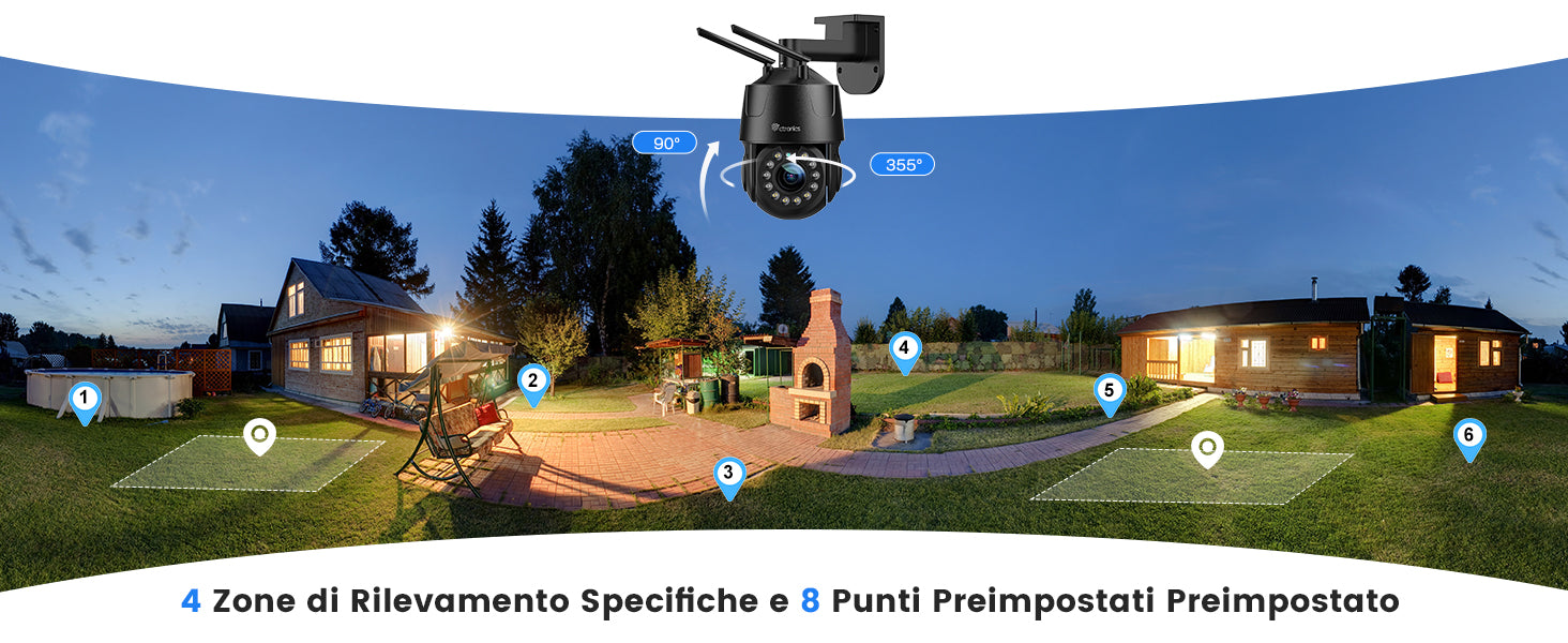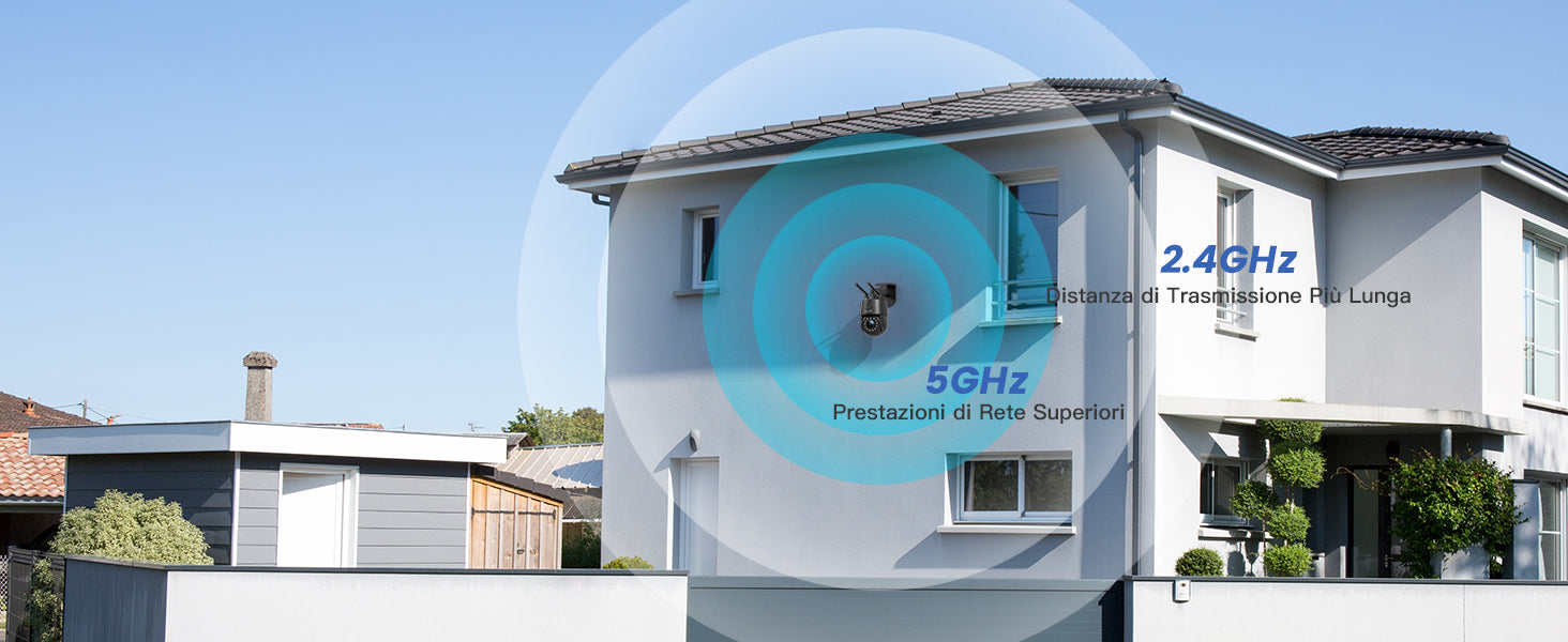 Supporta WiFi dual-band 2,4GHz, 5GHz, trasmissione del segnale più stabile, più opzioni di connessione. Supporta anche la connessione Ethernet RJ45 cablata. È possibile impostare 4 aree di rilevamento indipendenti e 8 posizioni preimpostate.