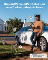【Rilevamento Intelligente & Tracciamento Automatico】 Questa telecamere wifi da esterno 4K rileva automaticamente persone, veicoli e animali domestici e tiene traccia dei loro movimenti. Le notifiche e-mail e app in tempo reale ti tengono aggiornato su tutto ciò che accade. Le immagini e i video degli allarmi salvati possono essere facilmente controllati nell'app (Ctronics PRO) per garantire sicurezza e controllo.