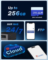 La telecamera può archiviare video e foto su una scheda TF fino a 256 GB (non inclusa), in modo da poter riprodurre e scaricare facilmente i video; Questa telecamera di sorveglianza Wi-Fi per esterni supporta la registrazione continua 24 *7, così non ti perderai nulla.