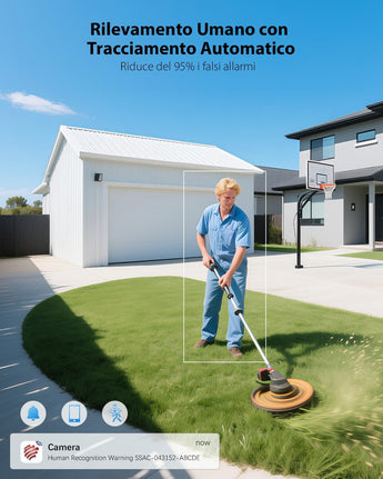 Dotata di avanzato rilevamento umano tramite AI, questa telecamera da esterno rileva l'attività umana e avvia un tracciamento preciso, inviando immediatamente avvisi in tempo reale al tuo smartphone tramite l'app "Ctronics Pro".